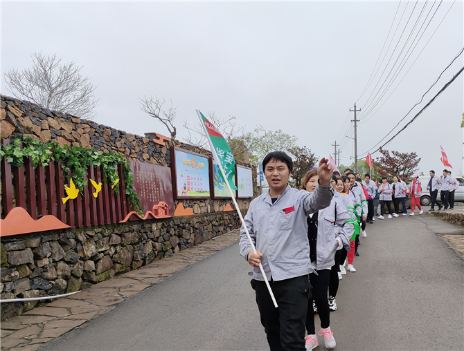 此次活動, 在注塑車間主管臧周峰的帶領下,來到許家山,所有隊員分成6組,列隊前往活動地點。