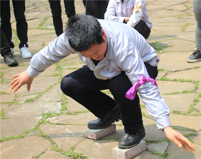 (摸石頭過河)賽長約6米,各隊通過“石頭”交替前移過河,根據各隊的用時長短依次排名。